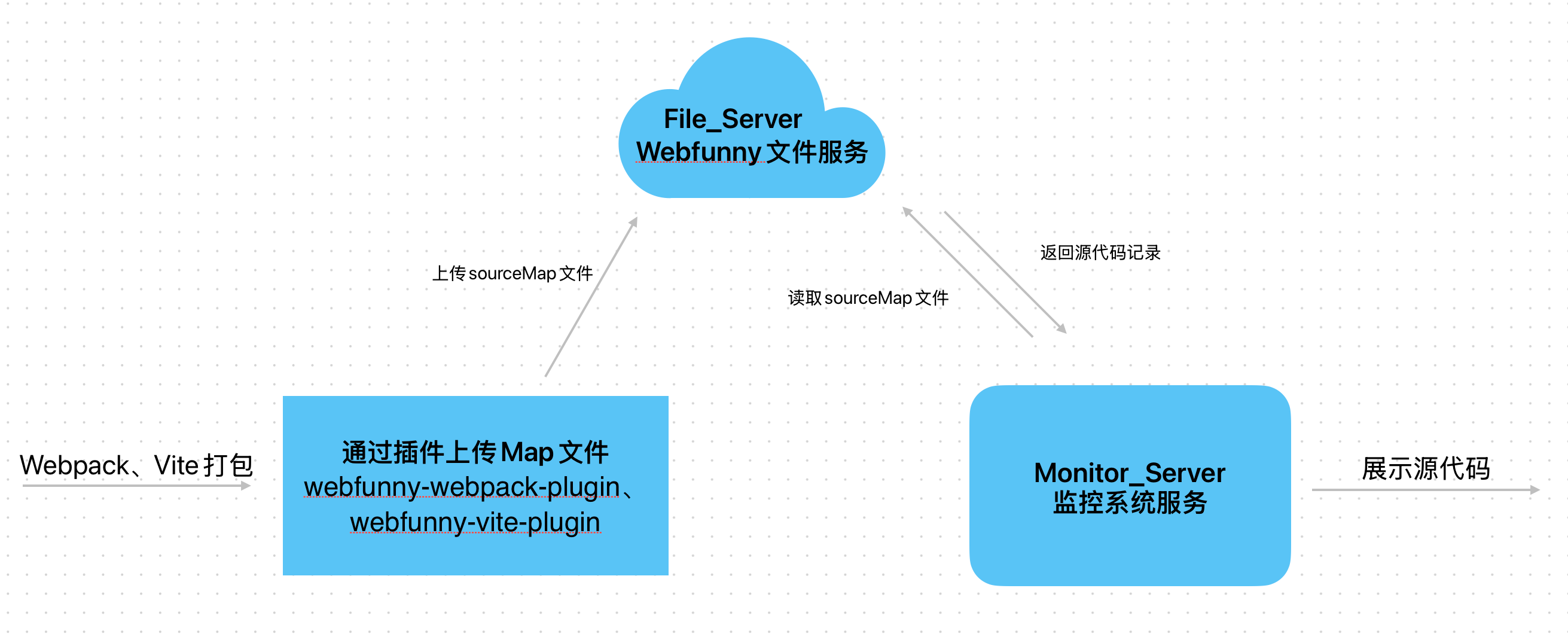 传统的sourceMap解析方案,是需要用户自己去维护map文件版本,想办法把错误代码和源文件对齐,这一步真的十分繁琐。为了能够解决这一痛点,打造一个自动化的解析方案,我们需要在整个系统中内置一个文件系统服务(file_server),用于上报和下载map文件